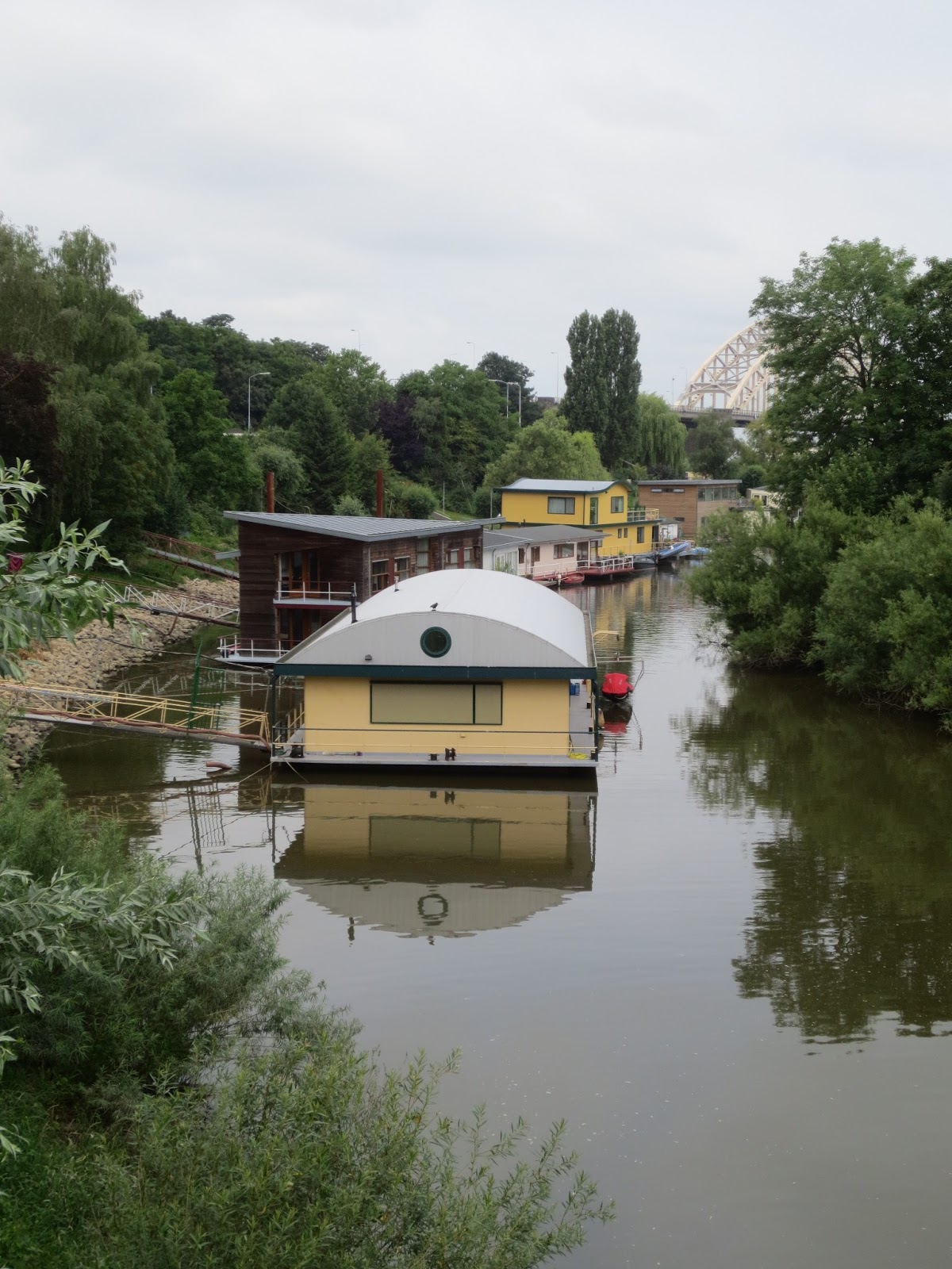 Our main goal for Nijmegen was to get out and enjoy nature. To this end, we took a long walk past some interesting sites. These permanent houseboats lined one of the rivers we passed: